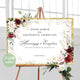 Welcome Табела за Сватба с тъмно червени цветя е чудесен начин да посрещнете своите гости и да им благодарите за споделения с Вас сватбен ден! Може да бъде персонализирана с вашите имена и дата.