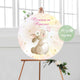 Кръгла табела за погача с мече в розово, е чудесен начин да посрещнете своите гости и да им благодарите за споделения с Вас ден! Може да бъде персонализирана за всяко друго тържество.