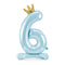 ФОЛИЕВ БАЛОН ЦИФРА "6" С КОРОНА И СТОЙКА В НЕБЕСНО СИНЬО, 84 см